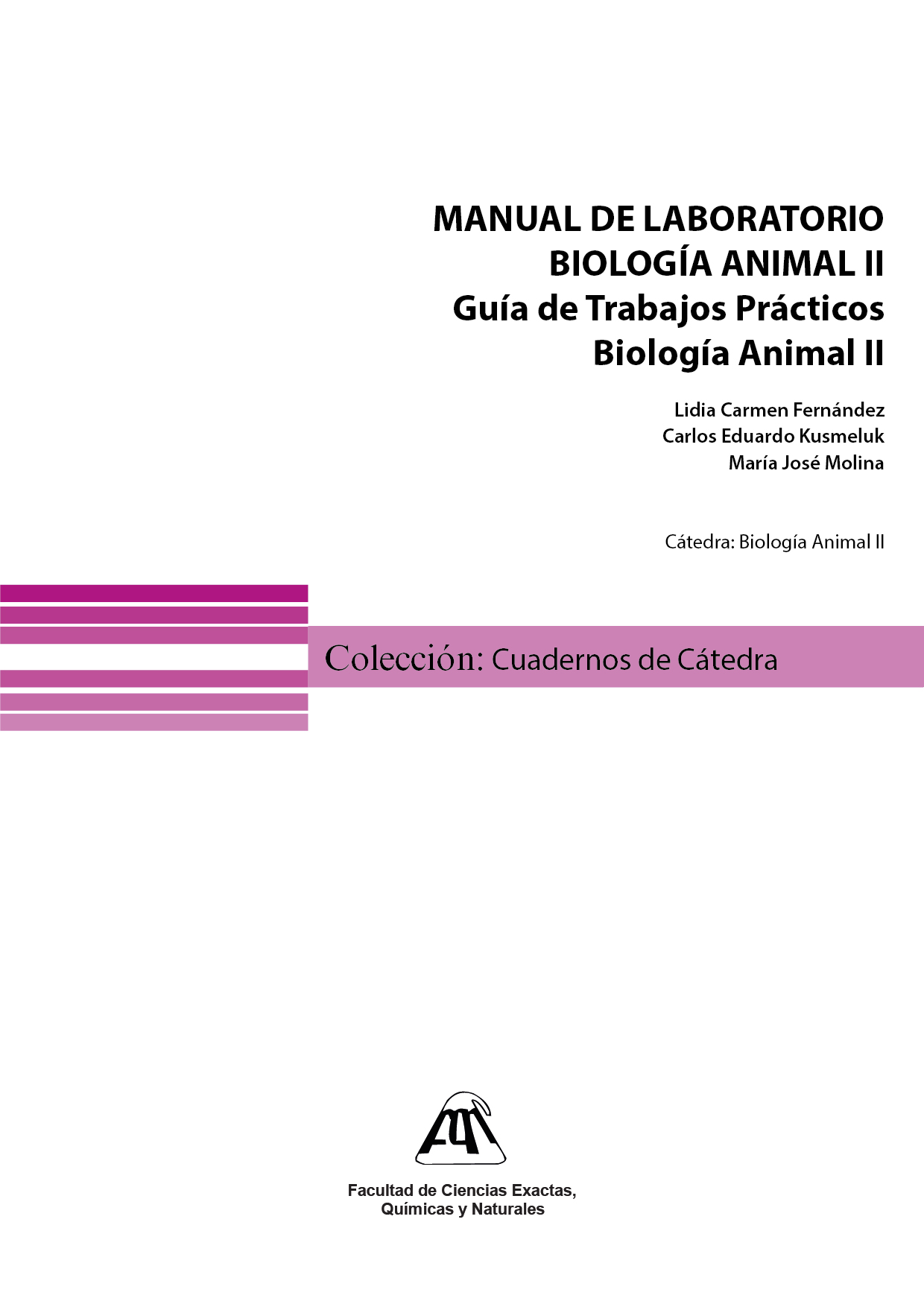 Autores: Lidia Carmen Fernández, Carlos Eduardo Kusmeluk, María José MolinaISBN: 978-950-766-281-2Cátedra: Biología Animal IIFacultad de Ciencias Exactas, Químicas y Naturales